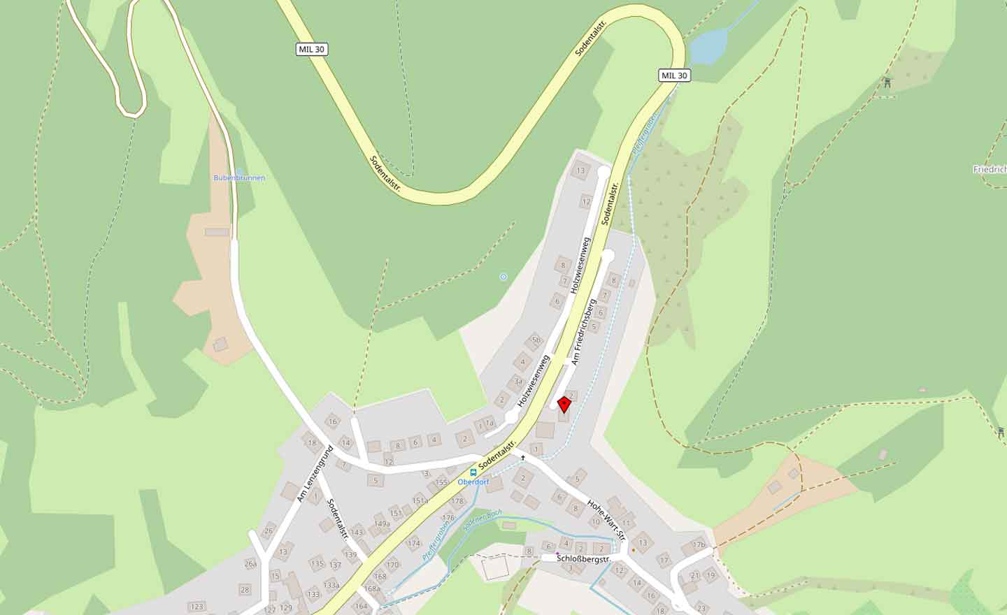 • In Soden auf Höhe des Ortsschildes die erste Straße links und danach gleich wieder rechts abbiegen.